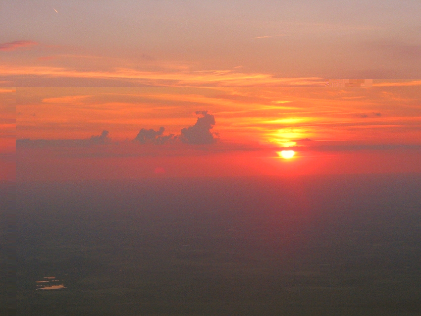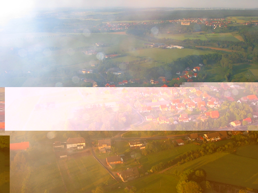 Die nachfolgenden Bilder zeigen die Regenwolken und den Sonnenuntergang am Dienstag, dem 6. Juni 2006, zwischen 20.40 Uhr und 21.40 Uhr (MESZ) in einer Höhe von ungefähr 3.000 Metern. Start am Flughafen Paderborn/Lippstadt (Kennung EDLP) bei leichtem Regen über Büren-Ahden (im Hintergrund die Wewelsburg). Der Regenbogen war in der Umgebung von Brilon im Hochsauerlandkreis zu sehen. Der Möhnesee glänzte im Gegenlicht. Geflogen wurde am Westrand des Kreises Paderborn, weit bis in den Kreis Soest hinein. Wegen des Sichtfluges mit einer CESSNA 172R war eine Landung vor Einbruch der Dunkelheit erforderlich.