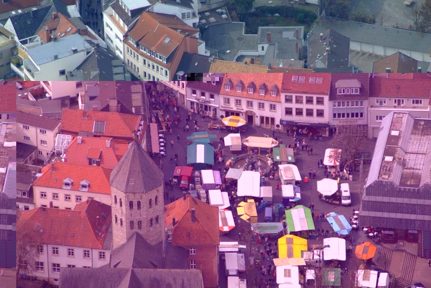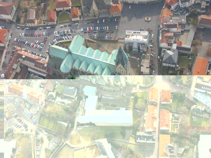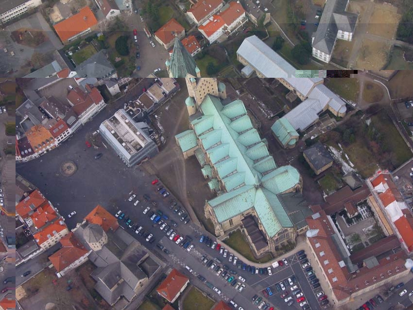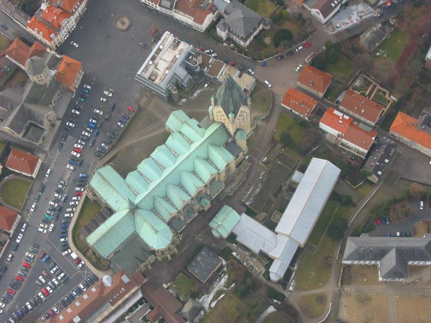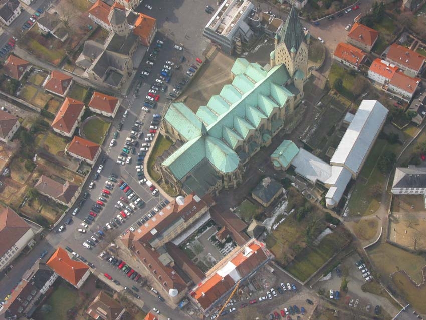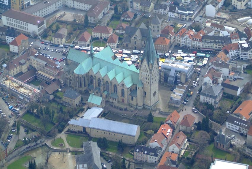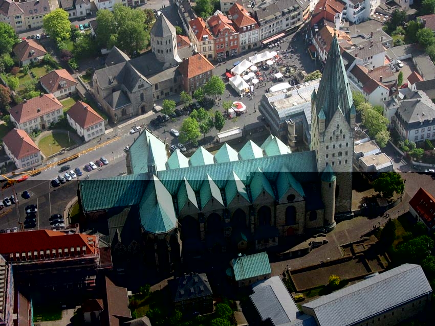 Eine Rarität sind diese Luftbilder und Flugansichten des Paderborner Domgebäudes zu verschiedenen Jahreszeiten. Wegen einer besonderen und unvorhersehbaren Verkehrssituation im Luftraum musste der Fotoflug für kurze Zeit in einen besonders niedrigen Luftraum verlegt werden. In dieser kurzen Zeit wurde der Dom umflogen, wobei einige der hier gezeigten, spektakulären Bilder aus kurzem Abstand entstanden. Es ist nur wenigen vergönnt, den schönen Dom aus dieser Perspektive zu erleben.