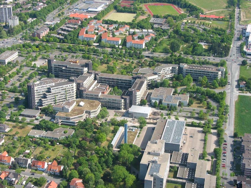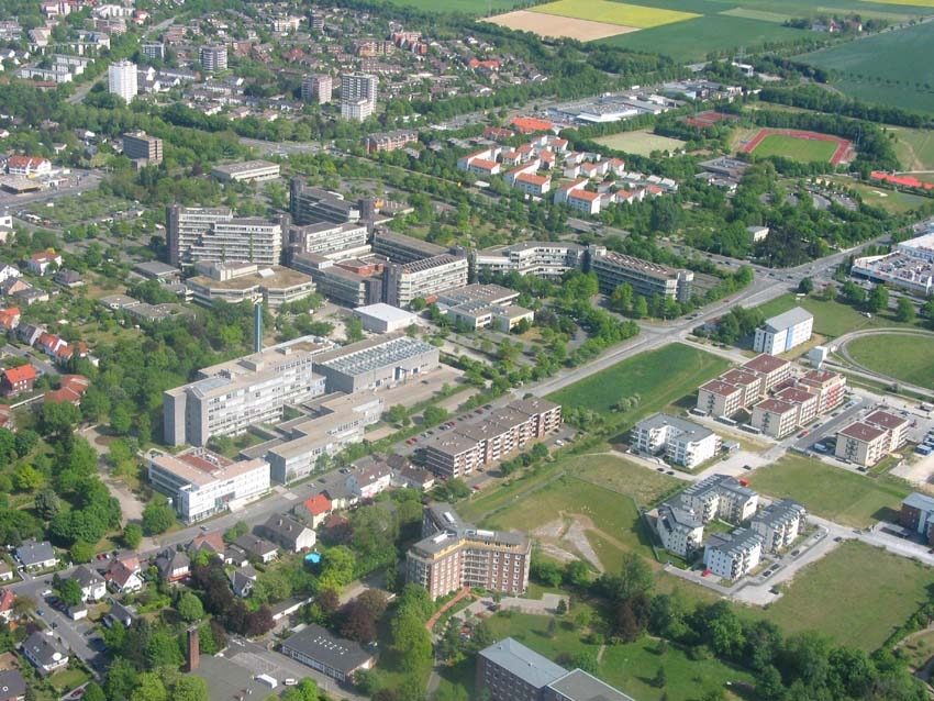 Hier sind jeweils 3 Bilder des Paderborner Kreishauses (Kreisverwaltung) und der Paderborner Universität zu sehen.